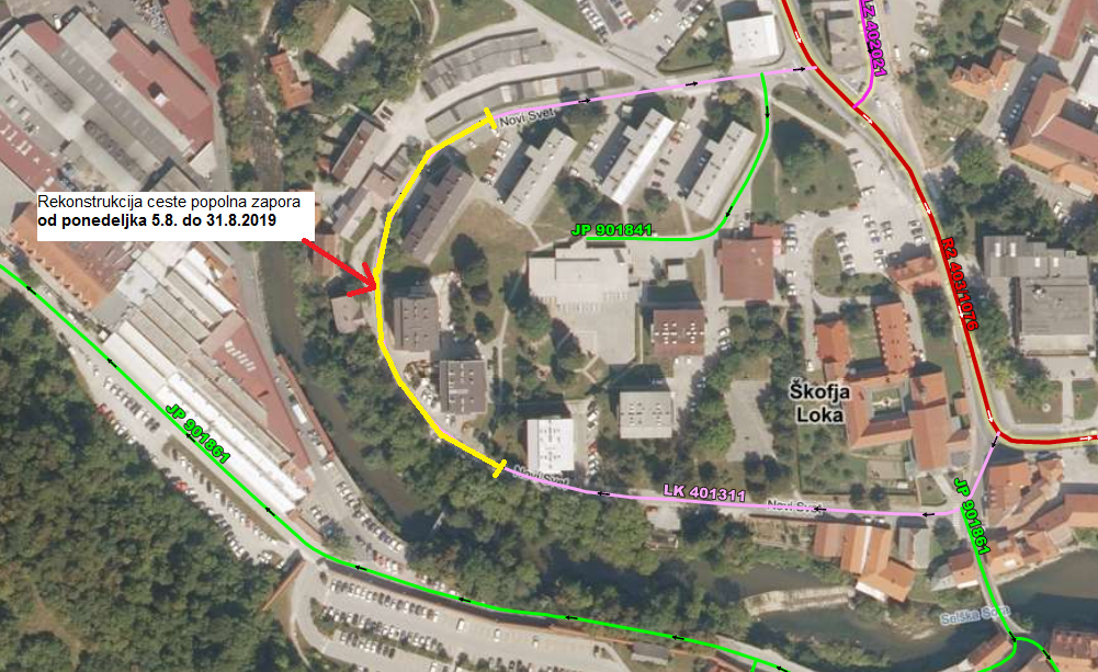 Občina Škofja Loka obvešča občan(k)e in ostale udeležence v cestnem prometu, da bo na občinski cesti Kapucinski trg – Novi svet – krožna cesta promet oviran zaradi rekonstrukcije ceste.